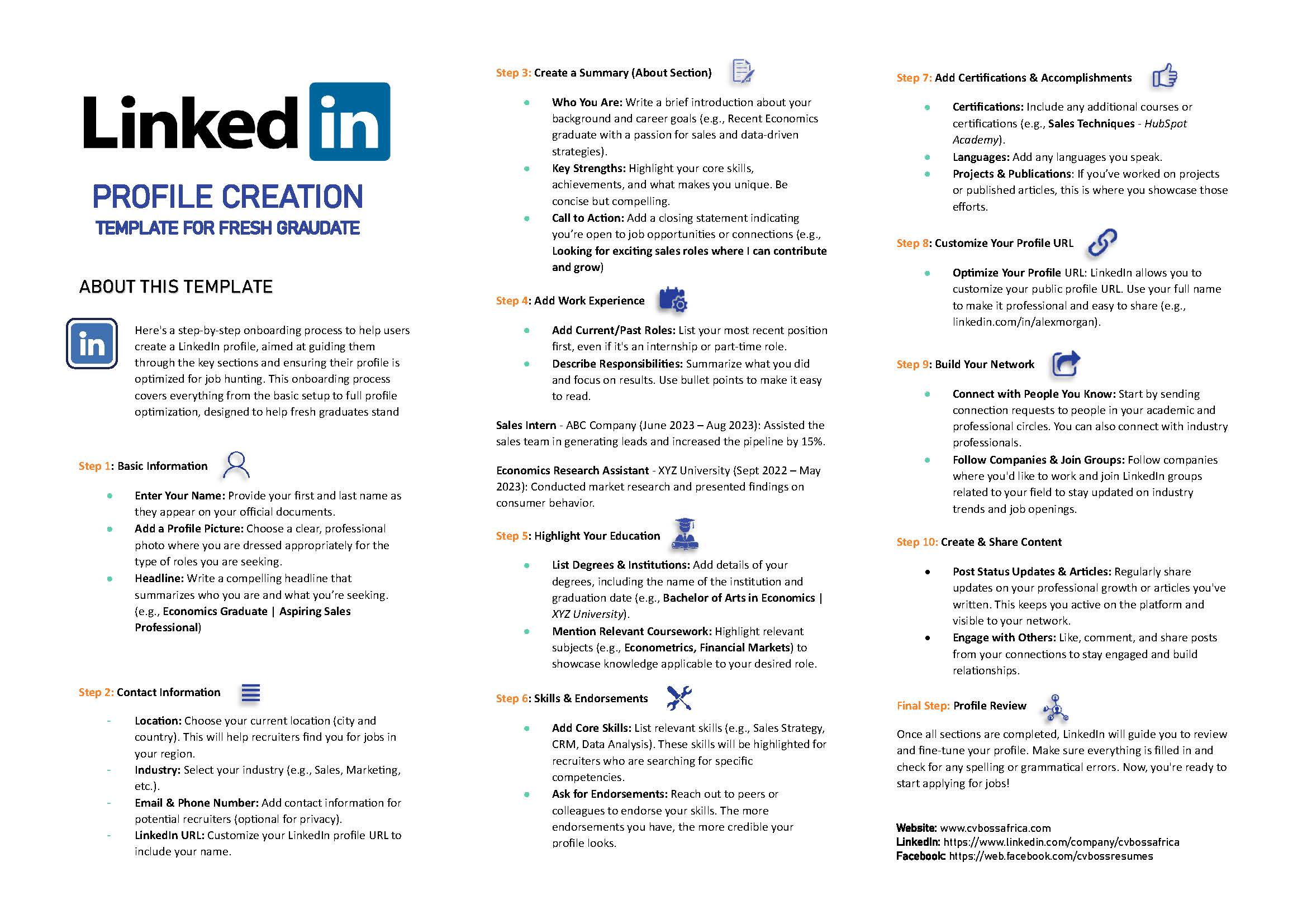 LinkedIn Optimization Template for Fresh Graduates (2 Pages)